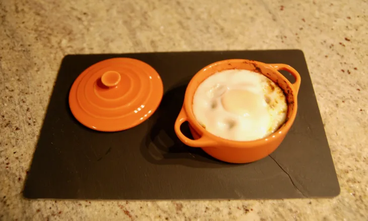 Ei hinzu und ab in den Ofen mit Deckel